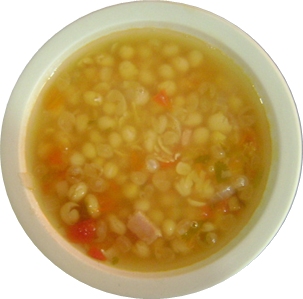 Consomé de pollo con garbanzo, zanahoria y calabacitas.