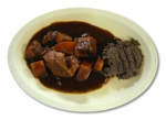 Carne de res en salsa de chile ancho, con cuadritos de queso blanco y perejil