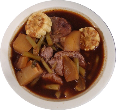 Rico Caldo de Res (chambarete)con chile y Verduras Mixtas.