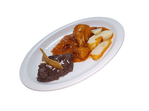 Pieza de pollo al ajillo con guarnición de papas salteadas