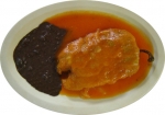 Pza de pollo (pierna o muslo) en salsa de chile cascabel con nopalitos.