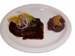 Res en salsa pasilla.